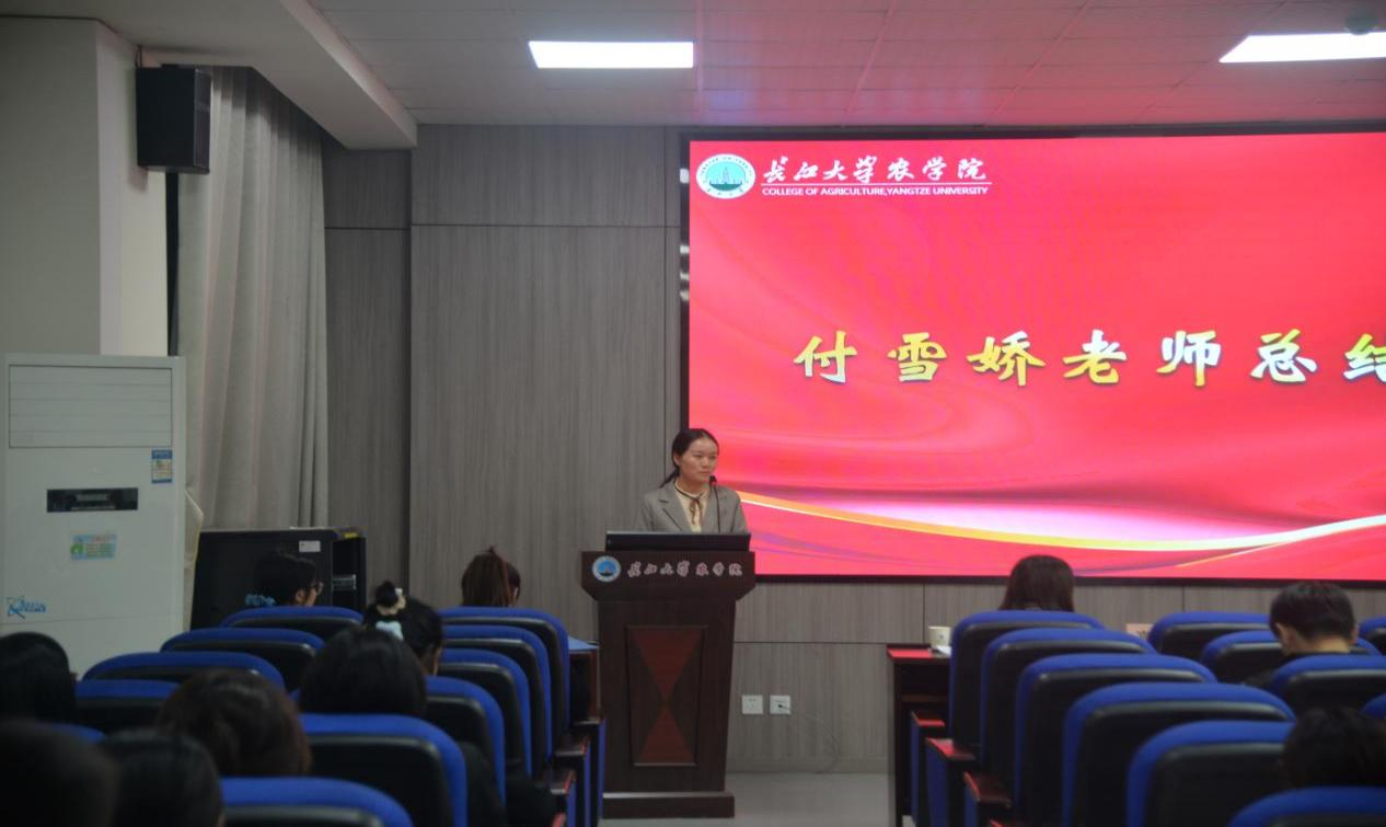 答辩最后,付雪娇老师作总结发言,她表示,本次答辩的意义就是要在全体学生中选典型、树标杆、立榜样,她激励广大青年学子要厚植爱农情怀、练就兴农本领,以脚踏实地的干劲、厚德笃行的担当,践行“厚德笃行 丰食天下”的院训,争做时代新农人。