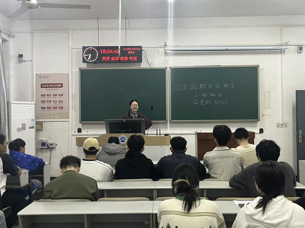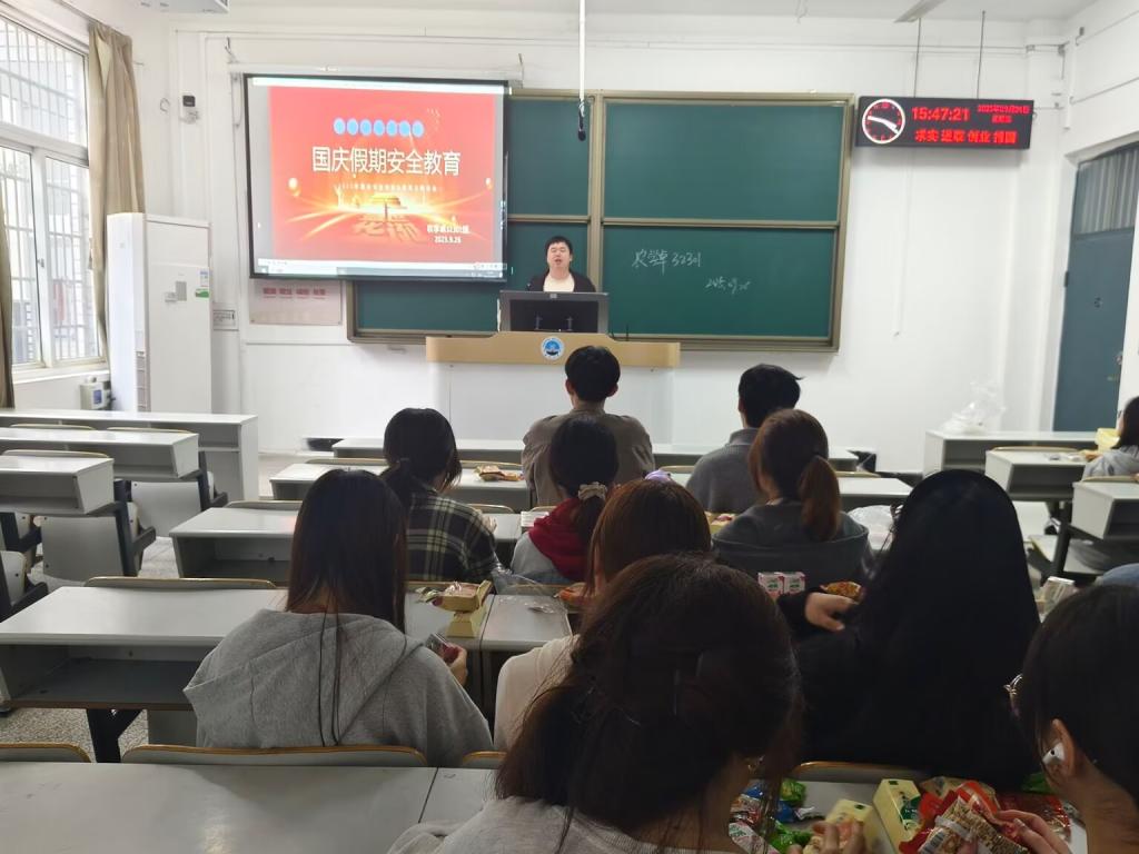 (通讯员 段文洁/文 张孝艺/摄)为切实增强大学生安全防范意识,确保国庆假期期间人身与财产安全,9月25-28日,5123导航l取五湖之才全体研究生、本科生陆续召开“国庆假期安全教育”主题班会。班会由班主任主持,全体同学参加。