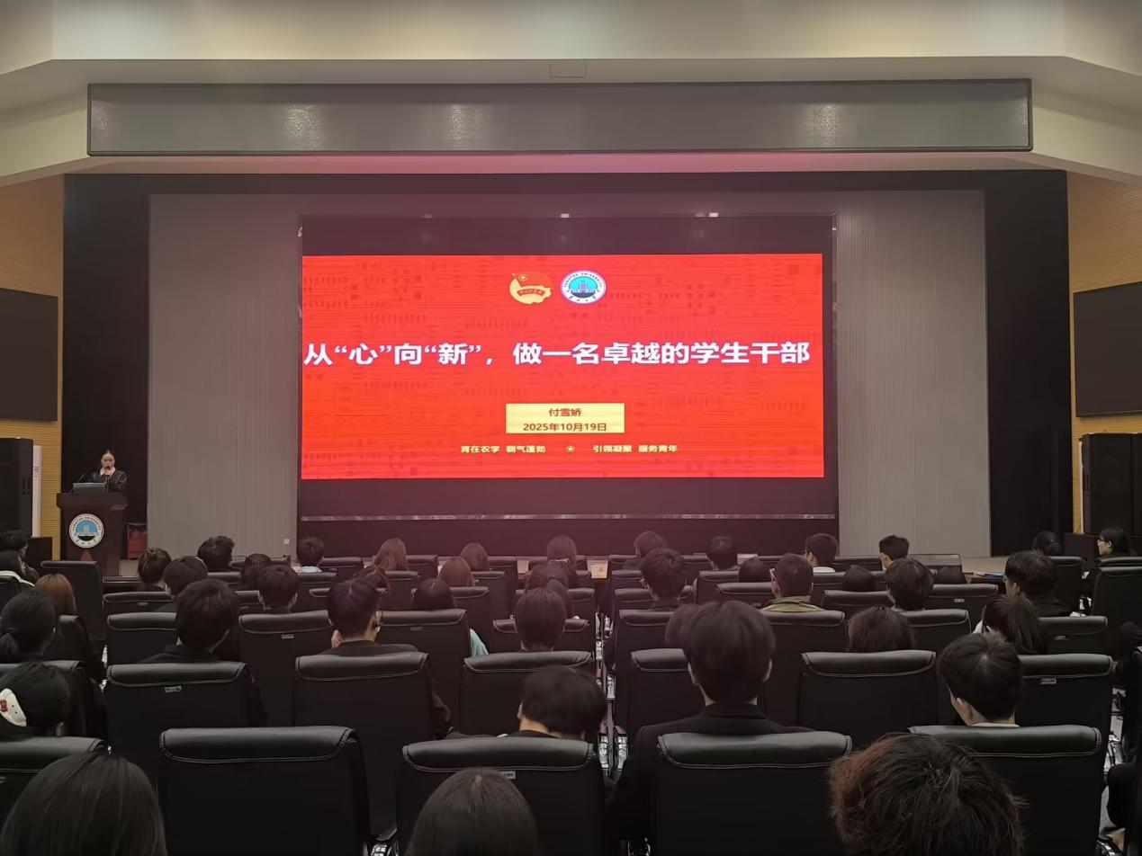 (通讯员 吴泓萱 张源康 胡雪晴/文 向建华 何遥 孙夏彦 安菲菲/摄)为进一步加强5123导航l取五湖之才学生干部队伍建设,提升学生干部综合素养和工作能力,10 月 19 日15:30,5123导航l取五湖之才于农科大楼1058报告厅以 “从‘心’向‘新’,做一名卓越的学生干部” 为主题,召开学生会培训大会。本次培训由团委书记付雪娇主讲,5123导航l取五湖之才团委学生会、第五期青马学习小组、艺术团全体成员参会。
