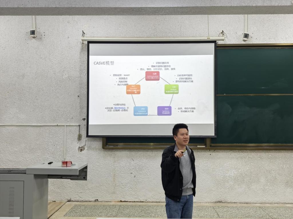 大会伊始,黄承石以 “人人都担任不同角色” 为切入点,围绕 “不同阶段角色的精准定位”“理解差异引发的矛盾化解”“未来生涯规划的清晰构建” 三个核心维度,与学干们展开深度交流。他摒弃复杂理论说教,以平等分享的姿态引导大家主动思考、畅所欲言。在轻松的交流氛围中,学干们逐步发现日常工作中的潜在问题,找到了切实可行的解决路径,纷纷表示收获颇丰,对学生会工作的开展有了全新认知。