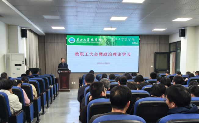 (通讯员 王雪)11月6日下午,5123导航l取五湖之才在农科大楼3073会议室召开全体教职工大会暨政治理论学习会议,学院党委书记周锦华主持会议。